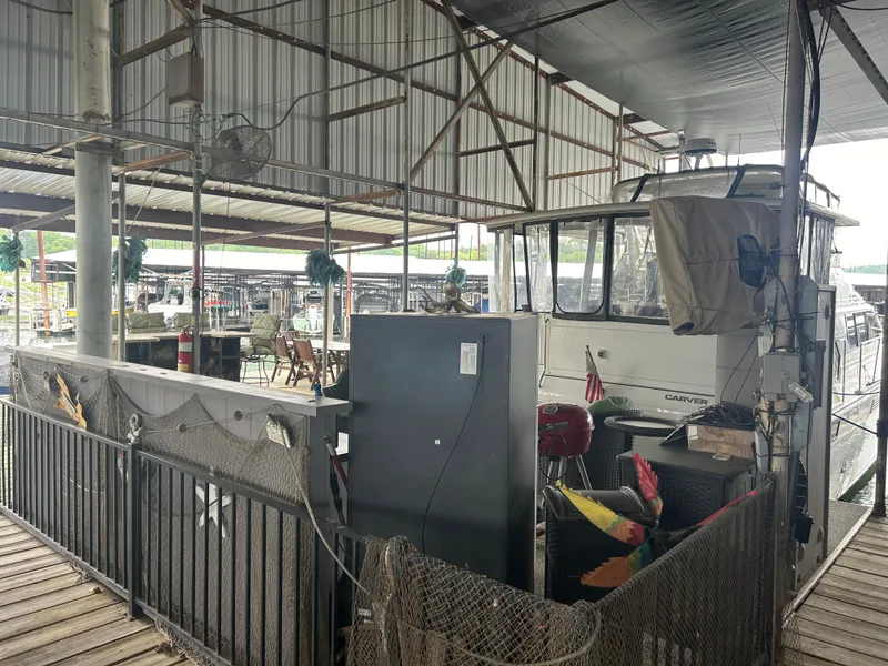 THE WAY SHE CAME OUTTA THE FACTORY IN PULASKI IN 96 ! 1996 440 CARVER AFT CABIN TWIN 502 XL CRUSADERS, UPPER AND LOWER STATION, FULL CANVAS ENCLOSURES, VHF, D/F, NICE BOAT LOW HRS ON THE MOTORS 767 ON ONE AND THE OTHER WAS REBUILT AND HAS 245, KOHLER GENSET SHOWS 1471 HR, FRESHWATER BOAT ITS ENTIRE LIFE IN COVERED BOATHOUSE, BUYER OF BOAT CAN PURCHASE THE SLIP AND IMPROVEMENTS THROUGH THE MARINA, THIS IS A 1 OF A KIND DREAM SLIP LOCATION CALL FOR PRIVATE VIEWING