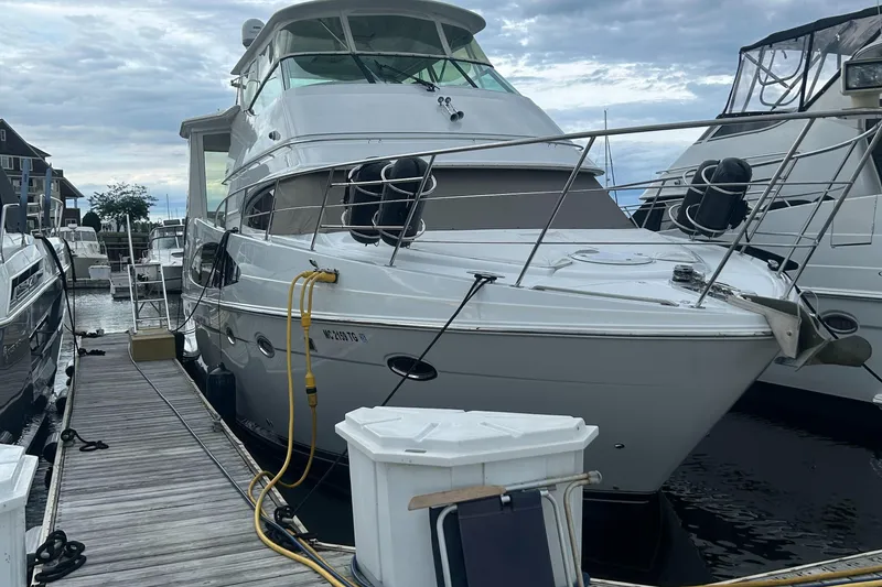 This is a one-of-a-kind 2003 Carver 466 Aft Cabin. This Yacht has many custom upgrades by the current owner including a beautiful custom hard top and climate controlled bridge and aft deck ! Two zone and two units !! Additionally docking is a breeze with the Yacht Controller Joystick tied to the bow and stern thrusters !