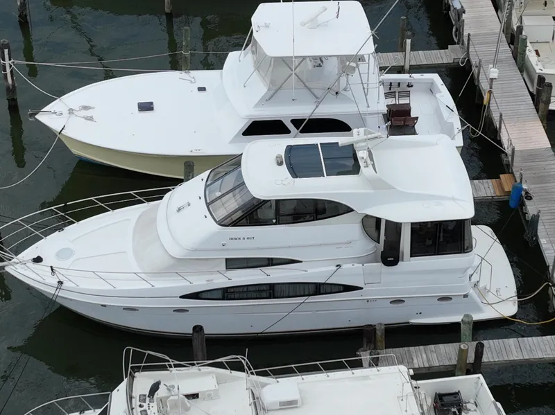 "DOWN AND OUT" is powered by the preferred Cummins 450's that are fresh water cooled, just had the 1000 HOUR SERVICE COMPLETED 05/2025, and has only 800 original hours!! She's seen light use, and well taken care of with all her maintenance being up to date on everything!! She also carries the upgraded Kohler generator to allow all the creature comforts of home while away from the dock and underway!!