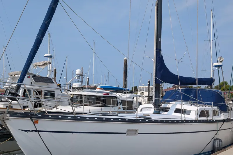 This 1987 Cascade Center Cockpit is a remarkable vessel with an overall length of 44 feet, designed for both comfort and performance. This used beauty features a robust fiberglass hull with a fin keel, ensuring stability and agility on the water. Powered by a reliable Yanmar 4JH4E diesel engine, delivering 50 horsepower, it boasts a cruising speed of 7.2 knots, perfect for leisurely adventures. The interior offers two cozy cabins and a well-appointed head, providing ample space for relaxation. With a seating capacity for six, entertaining friends and family is a breeze. The electric windlass enhances convenience, making anchoring effortless. Whether you're exploring coastal waters or embarking on longer journeys, "Shadowfax" is equipped to meet your needs with style and reliability. Experience the joy of sailing with this exceptional vessel, where comfort meets performance in perfect harmony.