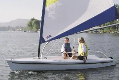This is one boat every family member and friend will want to sail all day long. The tapered one-piece carbon fiber mast means more sail power with less weight aloft. The rotating SmartRig mast acts as a reefing line and furling drum to effortlessly shorten or increase sail. The same line even rolls the sail completely around the mast for storage.