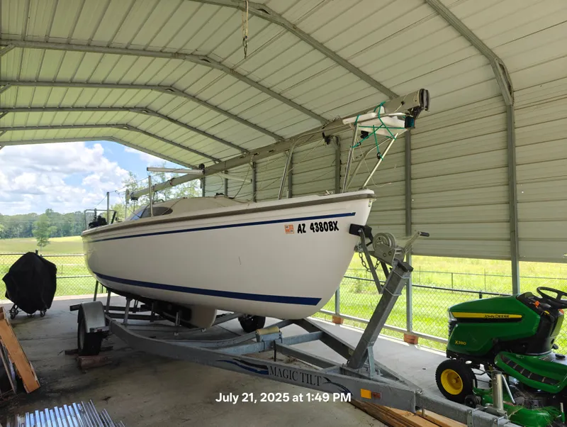 Clean Catalina Sport 22 Sloop rig, centerboard fin keel, trailer and Mercury 5hp four-stroke outboard, boarding ladder, headsail furling gear, canvas package, and lifelines. Tow weight is @ 2,500 lbs.