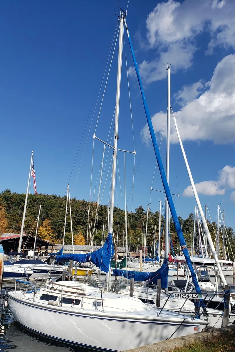 The 1987 Catalina 25' with it's traditional interior is designed to provide the comfort, style, and performance of a much larger boat. This is one of Catalina most popular designs. It has a very roomy cabin for its size. The Catalina has a long water line and swing keel. Designed by Frank V. Butler, the Catalina 25' was produced from 1978 to 1994. Also, the Catalina 25 was one of the most successful and longest running production sailboats ever built, and continues to have a strong following. This is a nice starter boat for someone new to sailing and is also great for day trips. Additionally, Catalina is known for being an older line of sailboats that still makes parts for it's earlier models. Therefore making repairs, receiving parts or making enhancements to a Catalina is a breeze.