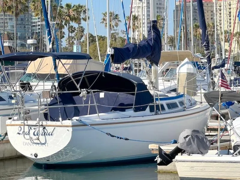 Now available for purchase, 2nd Wind is a 1985 Catalina 30 powered by a 23 HP Universal 25XP inboard diesel. The masthead rig includes a battened mainsail, furling Genoa, and Gennaker/cruising spinnaker, Garhauer traveler, and a total of four winches. Cockpit includes Bimini top with three side covers, mainsail cover, cockpit cushions, folding teak cockpit table. The main salon includes dinette, starboard settee, galley with oven and two-burner stove, ice box, microwave. Living quarters include aft Berth, V-berth and head with shower. Equipment includes Garmin 230 GPS, Standard Horizon VHF radio, Signet Depth and instrument, Autohelm 4000 Autopilot, Radar reflector, Richie compass.