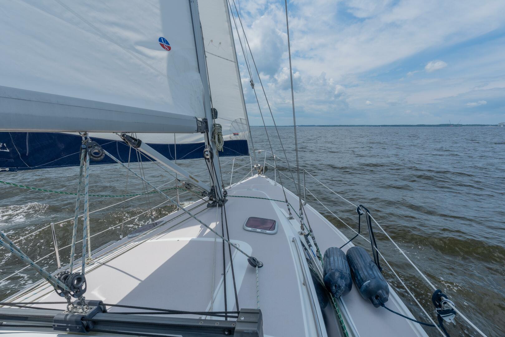 With only three owners and a life confined to the Chesapeake Bay, "Dublin Luck" exemplifies the 309's blend of performance and comfort. Her shoal‑draft hull and in‑mast furling mainsail make handling simple, while reverse‑cycle heat & A/C keep her comfortable year‑round. A Raymarine Smart Pilot autopilot allows confident single‑handed cruising. This boat is exceptionally clean and well‑maintained.
