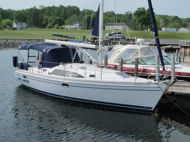 Equipped with desirable features: air conditioning, electric windlass, in mast furling mainsail, solid boomvang, furling genoas, full cockpit enclosure, shallow draft (4' 4"), full Ray Marine electronics (radar/plotter, autopilot, VHF radio, knot/log, depth sounder, electronic compass), complete galley (refrigeration (2 units), propane range, microwave), full teak interior, teak and holly sole, self tailing winches (4), and much more. Just one experienced yachtsman owner, always sailed in fresh water, and nicely maintained to new condition.