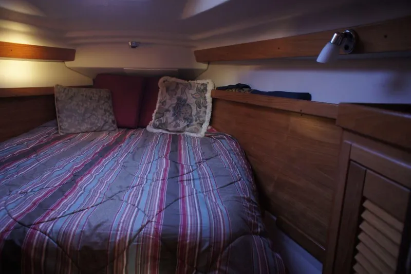 Below deck comfort is outstanding with five cabin fans, premium innerspring mattresses, upgraded upholstery, added storage in the galley and bilge, and a new Bluetooth stereo. The galley features an oven with baking stone and a refrigerator/freezer system that was recently replaced, upgraded with additional insulation and a dedicated freezer compartment capable of maintaining 35°F.