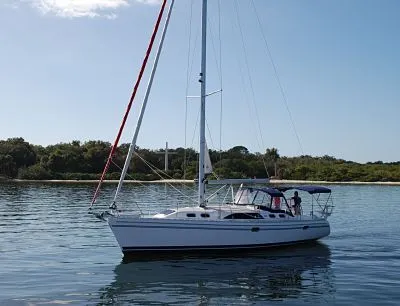 Catalina 3856, a new hull design with a long waterline, moderate beam and freeboard, and a handsome low-profile cabin structure. Everywhere you look on the 386, you'll find features that make sailing for the day or for extended periods a pure pleasure. Precise mainsail control is a snap with a 5' long traveler. Long, inboard genoa tracks accommodate headsails from a powerful 155% genoa to a storm jib, allowing a balanced sail plan for all wind conditions. The inboard shrouds and hardware facilitates tighter sheeting angles for upwind performance, and wide, unobstructed weather decks for safety. Some features inspired by her predecessor are an articulating forward berth with innerspring mattress, a dedicated filter locker, large cockpit locker with gull wing hatch and available quad-leaf folding table. The 386 is fast and comfortable with qualities proven in its pedigree that are sure to win you over.