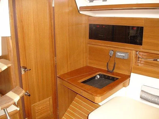 Some features inspired by her predecessor are an articulating forward berth with an innerspring mattress, a dedicated filter locker, a large cockpit locker with a gull-wing hatch, and an available quad-leaf folding table.