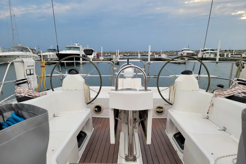 The exciting Catalina 400 represents a high point in the modern evolution of performance cruising boat design. The large aft cockpit with twin wheels is functional, ergonomically correct and beautiful. Rigging is stout and easy to keep tuned for optimal performance. Sail controls like the double ended mainsheet and rigid boom vang are logically arranged to efficiently manage the 400's powerful sail plan. The accommodations are the finest in her class. The cabins are naturally lighted and ventilated by skylights, hatches and ports. The galley is equipped for serious cooking without compromise. Equipped with electric winches, newer sails, and nice electronics.