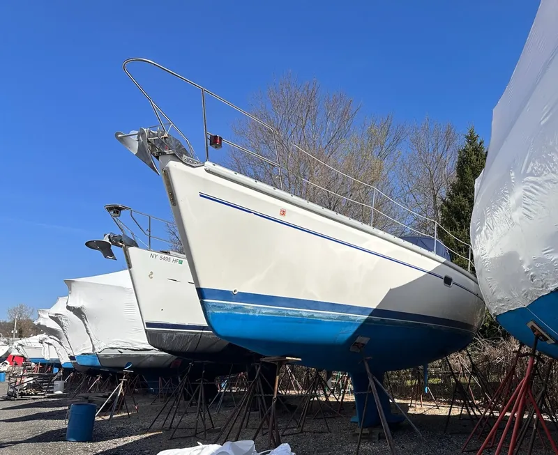 Live-aboard ready with generator and air conditioning - forward unit replaced in 2025. Spacious interior with functional U shaped galley complete with 2025 refrigeration/freezer, lots of storage, oven/stove and microwave. Large centerline berth aft cabin with multiple hanging lockers and private head.