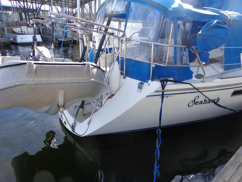 Diesel power, roller furling, dodger with full cockpit enclosure. Whaly model 270 dinghy with Honda 9hp outboard. cabin heat, Radar, GPS, depth, wind, speed, AIS, anchor gear with electric windlass.