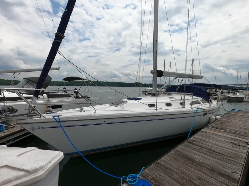 - Owners Stateroom Forward w/Pedestal Centerline Berth, Port & Starboard Settees, 2 Hanging Lockers & 5 Drawers Under the Bed and Private Access to Forward Head from Forward Cabin, 6'4" Headroom