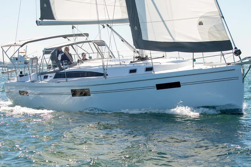 - Self-tacking jib and jib traveler are standard
