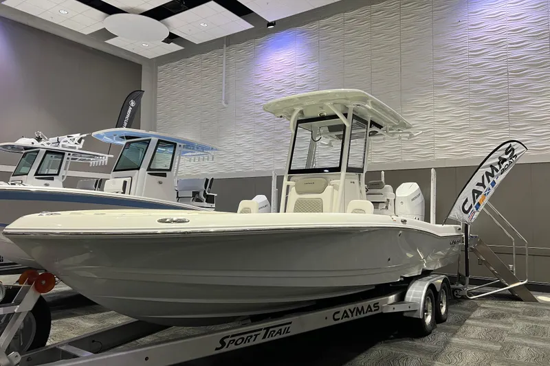 The 2026 Caymas 26 HB sets the standard for high-performance bay boats, delivering exceptional fishability, premium construction, and aggressive styling. Powered by a Mercury 425 Verado CF, this rig offers unmatched torque, smooth Digital Throttle & Shift control, and the confidence to run shallow in the backcountry or comfortably cross open water. Equipped with dual 10' Power-Poles, Zipwake trim tabs, and a hydraulic jackplate system, this Caymas is built for precise boat control and serious angling performance. Finished with premium hull, boat, and hardtop paint along with a complete white and grey upholstery package, this 26 HB delivers both striking looks and top-tier capability.