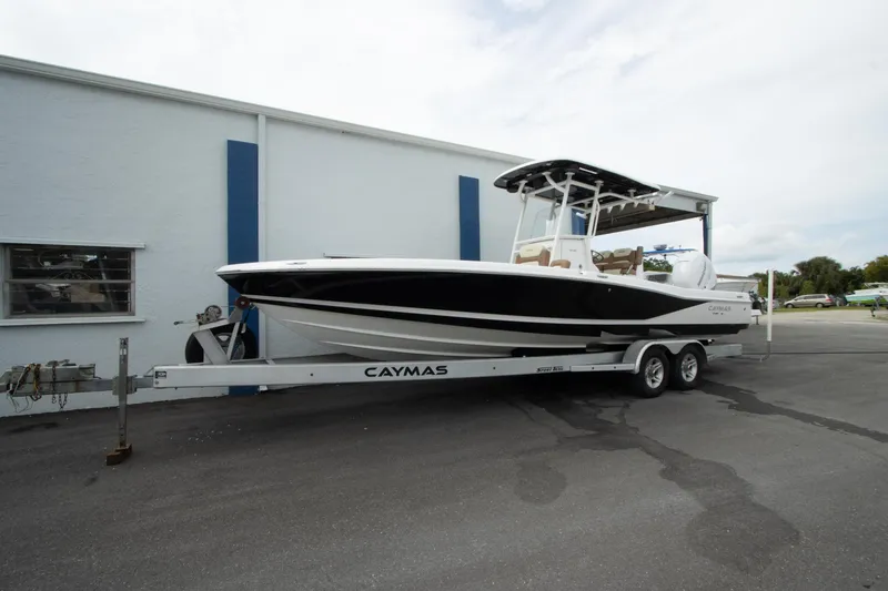 The Caymas 28HB is a perfect combination of pro-level fishability, distinctive contemporary styling, and family-focused comfort. Performance starts with a Michael Peters Stepped-Vee Ventilated Tunnel Hull. This patented hull delivers speed, fuel efficiency, and a precise and dry ride. Serious anglers will appreciate the 28HB's huge nonskid casting deck, massive built-in storage compartments for tackle and gear, 35 gallon aerated live wells and baitwell, backlit console display and a 120-gallon fuel tank for maximum range. Family and friends who hop aboard for the day of fun will love the 28HB cushioned seating at bow and stern, extra elbow room afforded by the boat's 9'4" beam, the combination of high freeboard and deep gunnels for added safety and security, a rocking stereo system and a "butter-soft' ride. See for yourself how the Caymas 28HB enjoys the best marine fit and finish utilizing the highest quality marine hardware and craftsmanship.