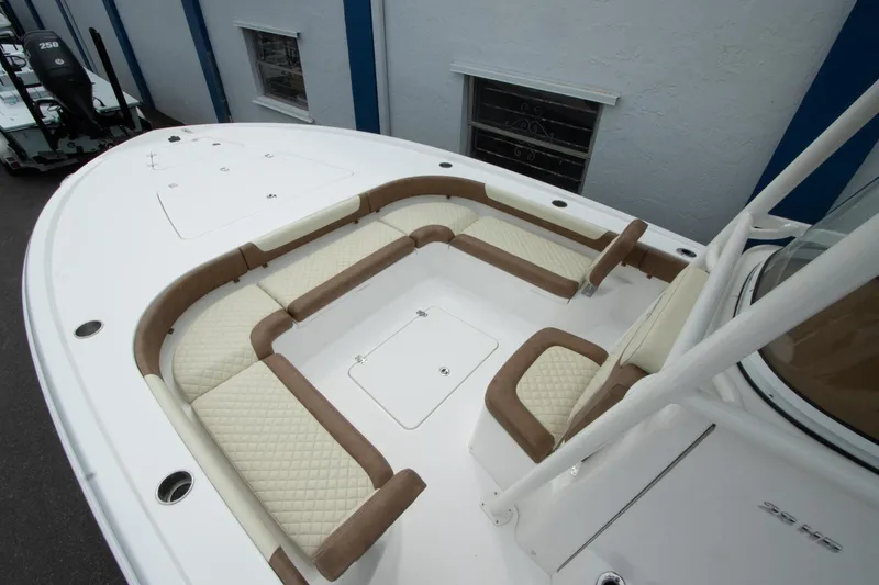 The Caymas 28HB is a perfect combination of pro-level fishability, distinctive contemporary styling, and family-focused comfort. Performance starts with a Michael Peters Stepped-Vee Ventilated Tunnel Hull. This patented hull delivers speed, fuel efficiency, and a precise and dry ride. Serious anglers will appreciate the 28HB’s huge nonskid casting deck, massive built-in storage compartments for tackle and gear, 35 gallon aerated live wells and baitwell, backlit console display and a 120-gallon fuel tank for maximum range. Family and friends who hop aboard for the day of fun will love the 28HB cushioned seating at bow and stern, extra elbow room afforded by the boat’s 9’4” beam, the combination of high freeboard and deep gunnels for added safety and security, a rocking stereo system and a “butter-soft’ ride. See for yourself how the Caymas 28HP enjoys the best marine fit and finish utilizing the highest quality marine hardware and craftsmanship.