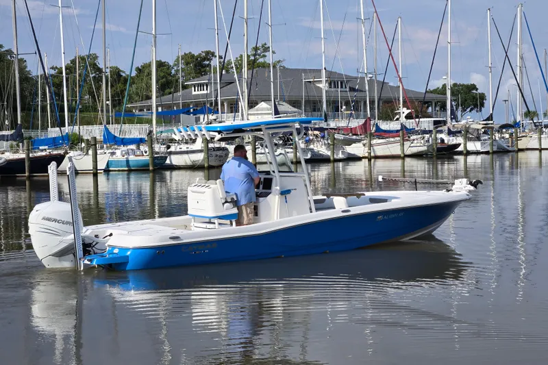 This patented hull delivers speed, fuel efficiency, and a precise and dry ride. Serious anglers will appreciate the 28HB's huge nonskid casting deck, massive built-in storage compartments for tackle and gear, 35 gallon aerated live wells and baitwell, backlit console display and a 120-gallon fuel tank for maximum range. Family and friends who hop aboard for the day of fun will love the 28HB cushioned seating at bow and stern, extra elbow room afforded by the boat's 9'4" beam, the combination of high freeboard and deep gunnels for added safety and security, a rocking stereo system and a "butter-soft' ride. See for yourself how the Caymas 28HP enjoys the best marine fit and finish utilizing the highest quality marine hardware and craftsmanship. The Caymas 28HB can be rigged with a Yamaha, Mercury, Suzuki or Evinrude outboard up to 425 horsepower.