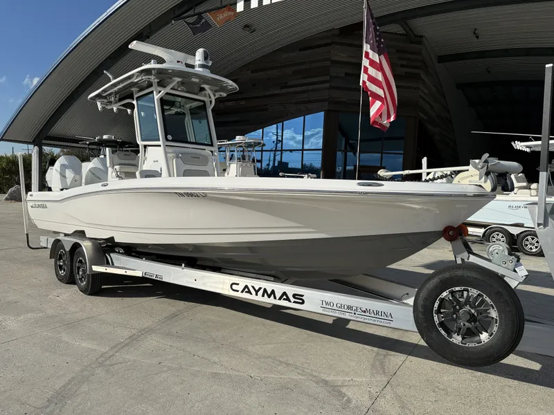 Click HERE to contact Matt for Availability or Appt: (985) 778-6636 matt@theboatyardinc.com2022 Caymas 28HBMercury Verado’s V8 300hp-Cold Fusion WhiteAluminum Tandem Axle Trailer w/ Spare+Complete custom Sea-Dek kit+Custom Sport Trail trailer with spare wheel, poly bunks, winch & load guides-Black wheel up grade+Motorized battery switches, battery parallel, voltage display+Power Pole Charge System+Flush mount stainless steel rod holders +2 additional at bow seating+JL Audio upgrade package #1: MM100 head unit, (6) 6.5' M6 speakers, (2) 8.8' M6 speakers, Amp+Underwater lights+Auxiliary 35 gallon fuel tank and associated valves and plumbing+Fiberglass hard top with custom powder coated frame in white- 7 rod holders, electronics box, dome lights, 3 LED spreader lights and PFD storage+Taco VHF mount (crank up)+Taco anchor light (crank up)+Taco Grand Slam 390 Outrigger Bases+Taco Deluxe Aluminum Tele- Outrigger Poles+Leaning post organizer/storage box +White with grey accent Upholstery Package, adds coaming bolsters, forward seating cushions, leaning post fold-down armrests+Custom colored hull+(2) 8’ Power Poles+Motor Guide Xi5 trolling motor with Pinpoint GPS+Yeti 65 Tundra+Mercury 1st Mate Marine Safety and Security System+Lithium Pro’s complete house, cranking, trolling motor (nmea 2000 compatible) package+Raymarine equipment package:+(2) Axiom Pro 12 RVX MFD’s+FLIR M364C with dual payload, HD zoom color camera, thermal, stabilization+Cyclone 12kW open array with 4-foot antenna with SeaMount riser+Augmented reality kit with CAM220IPRV200 bronze through hull with RealVision 3D+B175L Low Frequency CHIRP through hull+B60 non-chirp 50/200 kHz through hull+Ray73 VHF with AIS+Ray Evolution auto-pilot with p70s Control Head+RAY SR200 Sirius/ XM kit*FINANCING AVAILABLE**WARRANTY AVAILABLE*