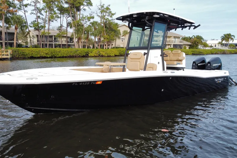 This Caymas 281 HB has been rigged with twin Mercury 300's, which is the maximum horsepower package for this model. NO trailer included