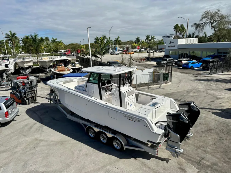 IN STOCK MODEL YEAR SALE! 2024 Caymas 30 CT, Powered with Twin Mercury 300 Verado's, JL Audio Speaker Upgrade, Sea Star Steering, Dive Door, Removable Stainless Steel Ladder, Lenco Trim Tabs, Additional Gunnel Rod Holders, AGM Batteries ( Engines & House), Freshwater Washdown System, Custom Triple Helm Seating with Flip Up Bolster, and so Much More!