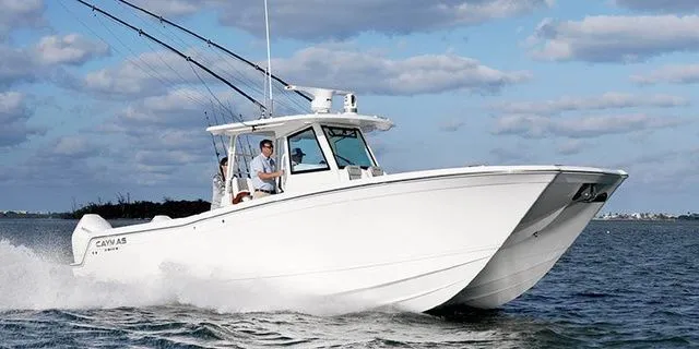 The 2026 Caymas 34 CT (Catamaran) is a high-performance offshore powercat engineered for anglers who demand serious fishability, long-range confidence, and all-day comfort. Designed to excel in rough offshore conditions while remaining family-friendly, the 34 CT blends cutting-edge hull technology with an innovative, wide-open deck layout built for efficiency and versatility.