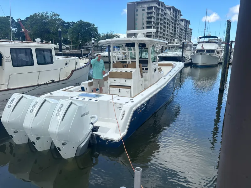 Luxury meets functionality with upgraded Sunbrella Horizon upholstery, a porcelain head with Corian® sink, and elevated helm seating for enhanced visibility and comfort. Whether you're chasing trophy fish or cruising with family and friends, this 2023 Caymas 341CC is the perfect balance of power, precision, and style.