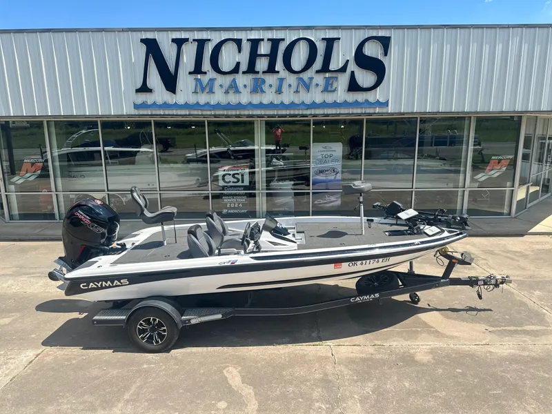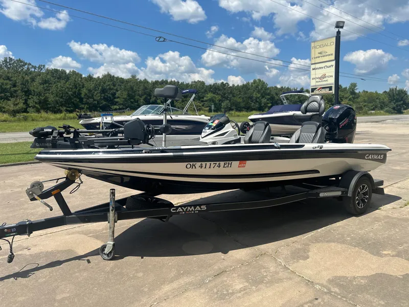 Used 2021 Caymas CX 18 SS powered by Mercury 150 PXS four stroke motor with only 85 hours and factory warranty until 04/12/2026 / Garmin force trolling motor / Garmin 126 SV at bow with Garmin LVX32 Panoptics / Dual Garmin 93 SV at console / Hot foot / Single axle trailer with spare. For more information contact Clint in McAlester @ 918-423-8848