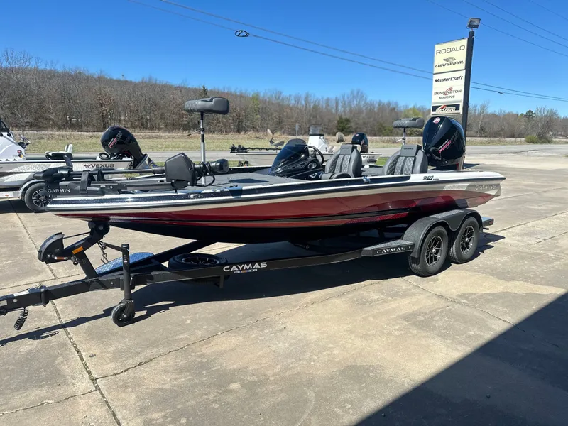New 2027 Caymas 201 ProNew 2027 Mercury 250L Pro XSColor Package "G" Red/WhiteCustom Tandem w/Brakes, Aluminum Wheels, Swing TongueGarmin Force Trolling MotorMinnkota 4-Bank Built-In Battery ChargerGarmin Echo Map 923SV-ConsoleGarmin Echo Map 923SV-BowUpgraded Wire Harness For ElectronicsManual JackplateHot Foot w/SlideStainless Steel Compartment Latches(2) Bike Seats W/Hydraulic Pedestals(2) Independent Insulated Rear LivewellsTilt Hydraulic Steering w/Custom WheelTurn Signal Trim LeverBuilt-In Fully Insulated Ice ChestCustom Boat CoverCockpit Seat RisersCenter Storage w/Tackle Organizing SystemLED Compartment LightingLED Livewell Lighting
