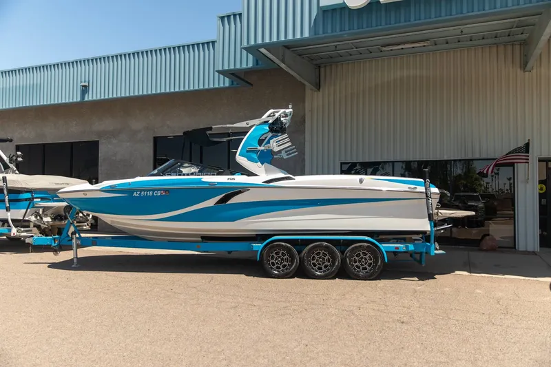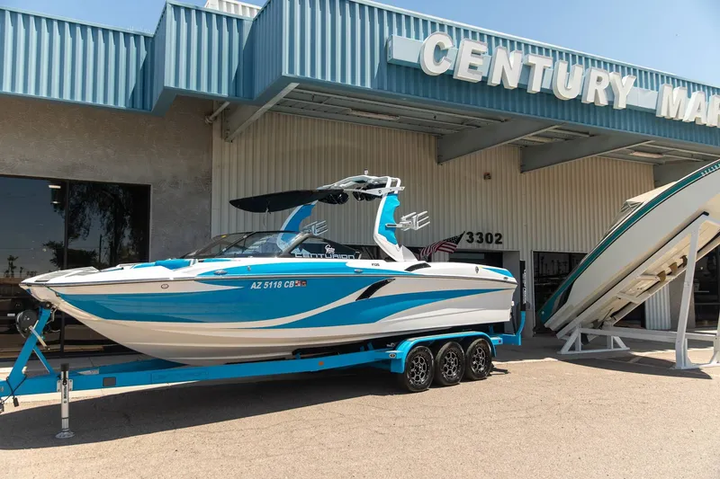 2019 Centurion Fi25, 2019 Centurion Fi25 - White/Silver Blue MF The World's best waves wakes and ride of the Centurion Fi Series have been stretched to limo proportions with the new 2019 Centurion Fi25 . This sleek ultra-wide bow 25-footer cranks out the perfect ride every time all while accommodating as many as 17. Built on the crazy efficient power of Opti-v Hull, the Fi25 shares the performance prowess of the rest of the Centurion line while remaining extremely fuel efficient. Options: -189 Hours -Downfire full cockpit and Surf audio package -Bombshell strapless board racks -Transom Ballast bag -Transom stereo remote -RAMFILL Pro -Grey boat cover -Bow filler cushion -Swimstep Ladder -Underwater LED lights -Triple Axle Trailer Century Marine (480)-835-9134 3302 E Main St Mesa, AZ 85213