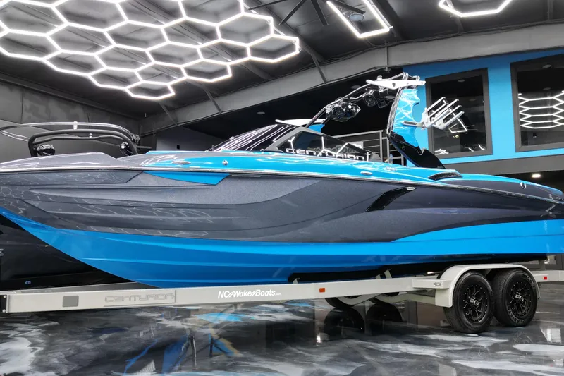 Built on our crazy-efficient Opti-V hull, the Fi25 stretches the available room and comfort in its 25-foot hull. It can accommodate up to 16 people and their gear while still offering great fuel efficiency. Great for surfing as well as wakeboarding.