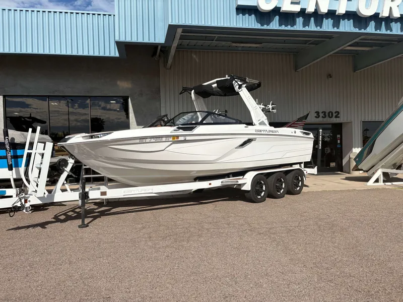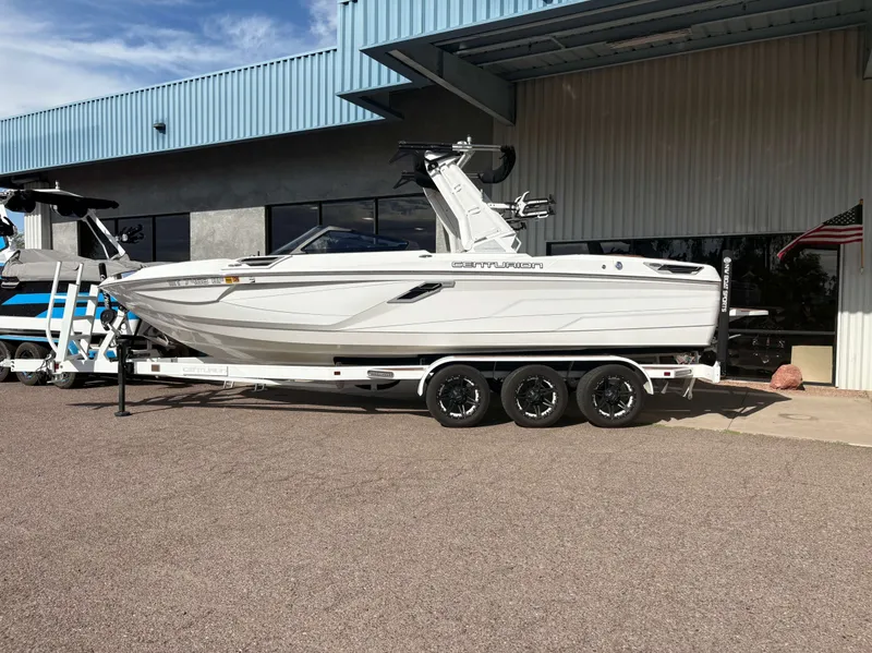 2022 Centurion Ri245, 2022 Centurion Ri245- White/Castano Brown Hours: 285.0 Length: 24' 6" Seating Capacity: 16 Ballast: 5,650 lbs. Engine: PCM ZZ6 6.2L Engine Trailer: Tri Axle Boatmate Dry Weight: 5,700 lbs. Trailer Weight: 1,500 lbs. Fuel Capacity: 89 Gal. Beam: 102" in. Draft: 36" in. Options: -PCM ZZ6 6.2L -Dropzone Auto Tower -Triple Axle Trailer -Front Boarding Ladder W/ Handrails -Thruster -Bow Ballast -Transom Ballast -2 Lean backs for the middle sliding seat - Strapless Boardracks -Coverfire 2.0 Surf Audio Package with Downfire - Heater W/ 3 Outlets -Table with Gatorstep Century Marine 3302 E Main St Mesa, AZ 85213 (480)-835-9134