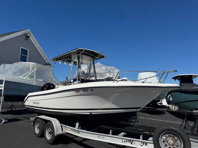 This 2000 Century 2001 Center Console is a solid, versatile fishing platform that has been recently repowered with a Mercury 150 Pro XS with only 102 hours, offering modern performance, reliability, and excellent fuel efficiency. The boat is well equipped with updated electronics including a Garmin ECHOMAP 93sv GPS and Humminbird HELIX 5 fish finder, along with a Standard Horizon VHF for communication. A canvas T-top with rocket launchers provides shade and additional rod storage, while aft spreader lights make early morning and evening fishing more convenient. This 20-foot center console is a great option for anglers looking for a dependable and capable inshore or nearshore fishing boat. Options & Features Repowered Mercury 150 Pro XS Outboard - 102 Hours Garmin ECHOMAP 93sv GPS / Chartplotter Humminbird HELIX 5 Fish Finder Standard Horizon VHF Radio Canvas T-Top Top-Mounted Rocket Launchers Aft Spreader Lights Canvas T-Top Top Mounted Rocket Launchers