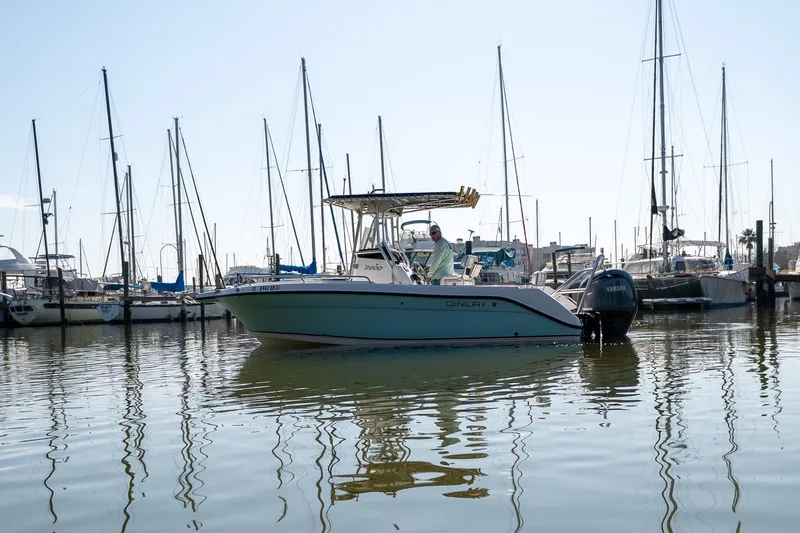 Introducing the 2007 Century 2200 Center Console, a remarkable sports fishing boat that combines performance and style. With an overall length of 22 feet, this vessel features a robust fiberglass hull designed in a deep vee shape, ensuring stability and agility on the water. Powered by a Yamaha outboard engine, this boat delivers an impressive 200 horsepower, making it perfect for both leisurely outings and serious fishing expeditions. With only 42 hours of use, this engine promises reliability and efficiency for your adventures. The Century 2200 is equipped with essential features that enhance your boating experience, providing a comfortable and functional space for fishing enthusiasts. Its design emphasizes practicality while maintaining a sleek appearance, making it an excellent choice for those who appreciate quality craftsmanship. Experience the thrill of the open water with this exceptional sports fishing boat, ready to create unforgettable memories. Repowered with a 2025 Yamaha 200 4S. 2021 McClain Tandem axle trailer.