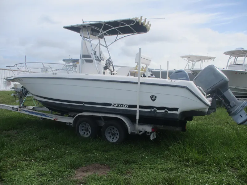 Pleasant surprises abound on the Century 2300 Center Console. Designed by fishermen for fishermen, this boat has all the features serious anglers expect, and even some they don't - like the head compartment, hidden behind the swing-away seat at the front of the console. The 2300's compact and efficient helm station features a windscreen with a stainless steel console rail and complete instrumentation. The easy-access 15-gallon aerated baitwell is molded into the transom. Put a catch on ice or store dry gear in either of the two fold-top insulated bow storage compartments.