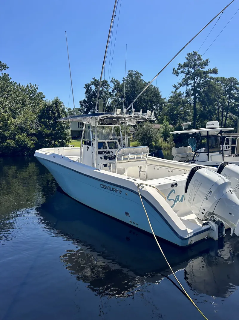 This recently repowered Century 3100 Center Console with 35hrs is one hard-core offshore fishing machine. Her wide beam and classic open deck layout leave anglers plenty of room. Standard features include independent dual live wells; a lighted, two-part aerated and recirculating 75-gallon bait well, which is adjacent to the cutting station with a sink and a wash down system; four 100-quart insulated fish boxes; and a great deal more.