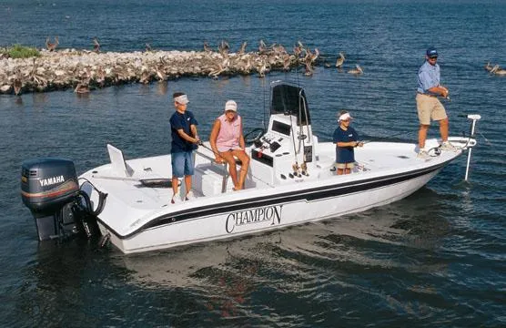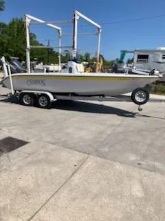 INCLUDES 80# TROLL MOTOR, POWER POLE, LOWRANCE 9", YAMAHA 200 OX 66 YWO STROKE, TRAILER WITH SPARE, HULL IN GOOG SHAPE, YELLOW STRIPE The 22 Bay Champ is capable of handling rough waters while keeping bait alive and fresh using a unique, hi-speed, 23-gallon baitwell resurrecting system. A port-side front rod locker (capable of storing 7.5 foot rods) and starboard front locker make this boat both versatile and durable.