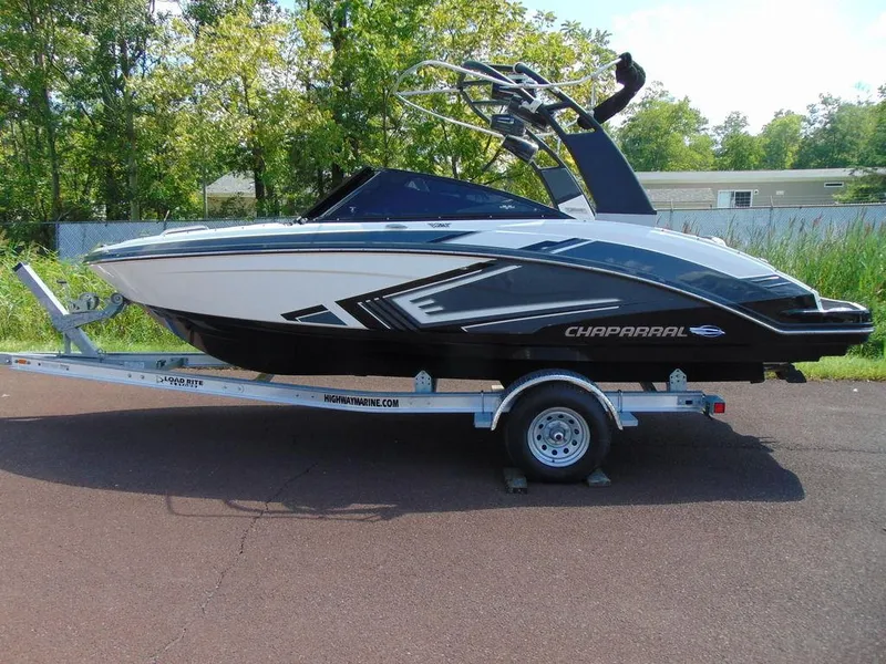 Interested in a new 203 Vortex but want to take it up a notch? Enter the 203 VRX. The new boat features the same hull design, interior layout and high quality construction as its Vortex sister ships. The difference is a standard equipment package that includes upgraded extras and eye-catching graphics unlike anything you've ever seen in a jet boat. Six color choices including Aqua, Biscayne Blue, Fire Red, Lime, Stealth and Yellow are anything but shy. In addition to the head-turning style, the new VRX includes a white or black folding arch tower with a ski mirror standard. All the good stuff you've come to expect from Chaparral is standard on the 203 VRX. Snap-in cockpit carpet feels good underfoot and is easily removed for speedy cleanup. U-shaped cockpit seating with a multi-purpose Oasis port side lounge is an open invitation for family fun. You'll be amazed at the comfort and expanded capacity. The sound system rocks and the dash features a hand-stitched vinyl finish that says high class in every way. Aft, a super-sized integrated platform provides the perfect launch pad for the water sports enthusiast. Twin aft facing stern seats connect onboard passengers with all the splashing going on in the water. Power is supplied via a 1.5L Rotax high output powertrain that ties into the most advanced dashboard electronics you'll find at this length and price point. Available at No Haggle, Real Deal pricing that will please any budget, the 203 VRX also comes standard with a 15" black powder coated trailer.