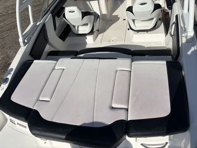 - Cockpit Layout: Two Bucket Seats (Slide and Swivel) with Logo Badging and Aft Sundeck with Storage Below