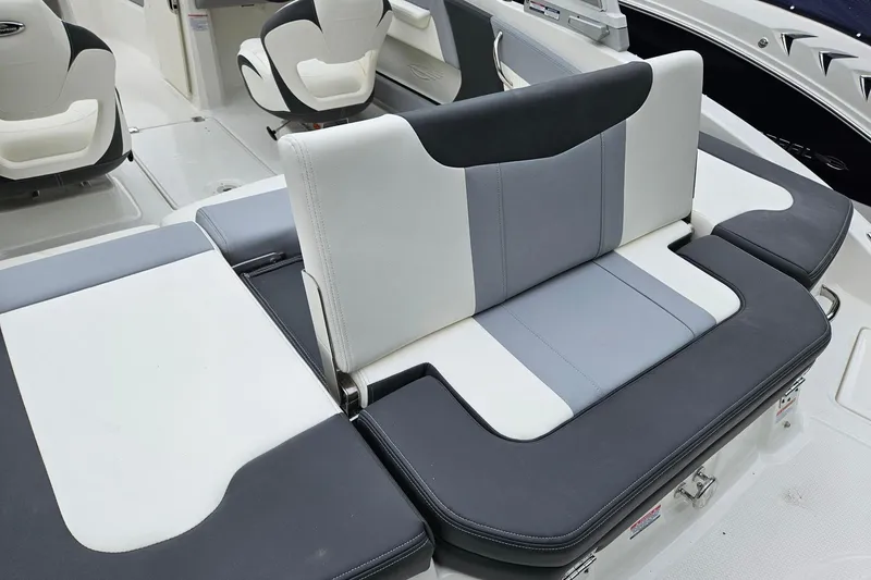 - Cockpit Layout: Two Bucket Seats (Slide and Swivel) with Logo Badging, Rear Bench Seat and Aft Hinged Sundeck with Walk-Thru, Lounge Position and Aft Facing Seat