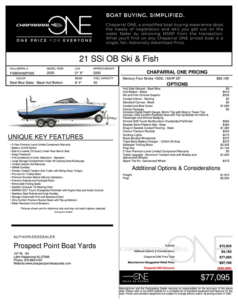 Chaparral ONE Price: $77,095