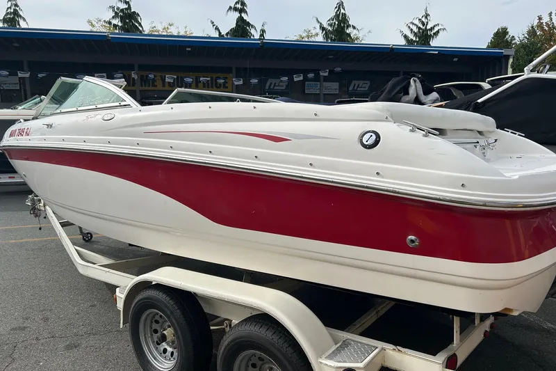 Very clean 2000 Chaparral 216 SSi Sport with only 531 hours on the Volvo 5.0L Gi. High quality watersports tower adds to its versatility! This model has excellent handling for its size. Recently had brand new interior vinyl and new high-quality snap-on bow and cockpit cover installed. Boat has tons of storage, an in-floor ski locker, and a cooler in the bow and transom. Includes depth finder, anchor, chain, rope, and tandem trailer. Excellent starter water sports boat that has just been through our mechanical inspection and has great compression on all cylinders!