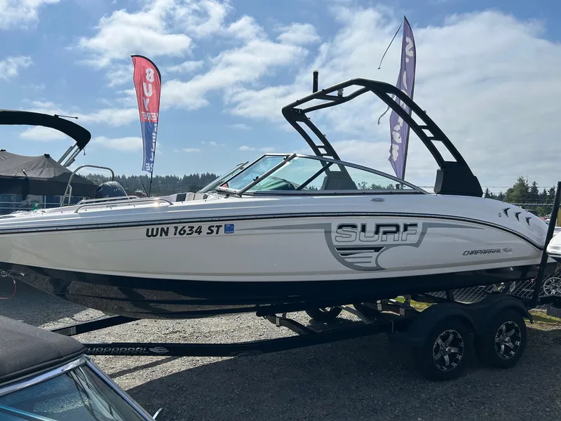 Endless wake, endless fun. This pre-owned 23 Surf combines everything you love about legendary Chaparral quality with the excitement of the Surf series. Wakesurfing is more thrilling and easier to enjoy than ever, thanks to the Malibu Surf Gate™ that lets you instantly adjust your wake - no repositioning necessary! One thing is for sure: if you're not already a wakesurfing enthusiast, this 23 H2O Surf is sure to turn you into one.
