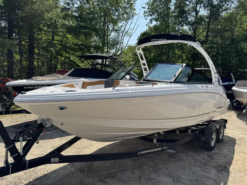 2025 CHAPARRAL 23 SSI Sport, Options: Merc 4.5L DTS Bravo 3 250hp White Hull Interior - Cayenne White Storm Folding Velocity Tower Cockpit & Bow Cover Deluxe Package Bowfiller Cushion Cockpit Table w/ Mounting Brackets Snap-in SeaDek Flooring Swim Platform SeaDek Flooring Simrad GO9 GPS/Fish Finder Safety Kit Installed Black Bonded Windshield Dual Battery w/Crossover Switch Docking Lights Tandem Axle Trailer w/Brakes & Folding Tongue