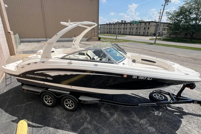 This beautiful boat is perfect for anyone wanting to get on the water without breaking the bank. Cruising the lake, water sports or a trip to the beach? No problem! The swim ladder at the bow is perfect for beach days. Plus there is a water wash down at the bow & stern which is great for rinsing sand off & keeping the boat clean. She is powered with a single Volvo 300 V8 with ONLY 229 HOURS!!! With a dual prop giving you more torch for tubing or water sports. Extra features include: a grill with mount! Table with mount & 3 optional places to set up and dedicated storage. Bluetooth stereo & lots of speakers. Underwater lights & interior accent lights. Sink & easy access to trash. Snap in carpet. Additional canvas cover. Canvas top for the sports tower. Sports tower can lower for low clearance. Surf adjustment settings like cruise control. Boat comes with a nice tandem axel trailer with spare tire, and additional accent lights. Located in Sandusky, OHIO. Call Laura for more info or to set up a showing.