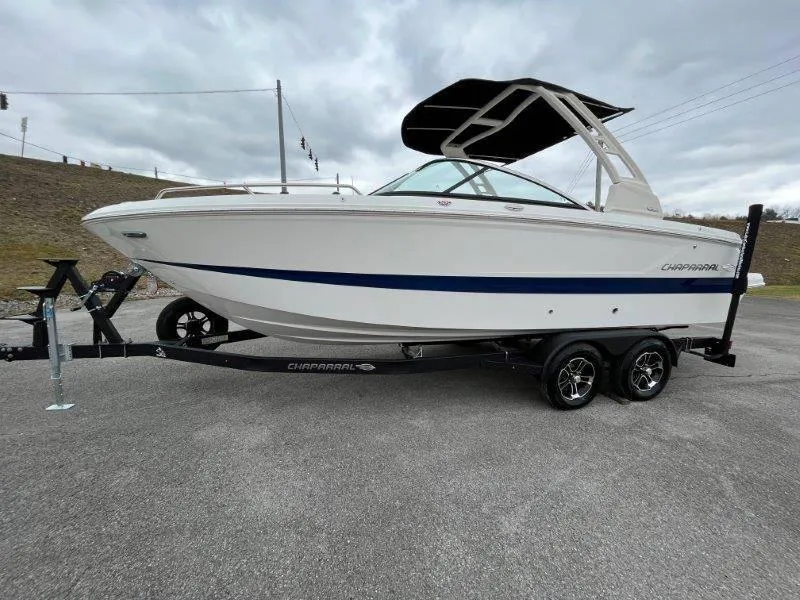 2024 Chaparral 247 SSX, OPTIONS Hull Side Gelcoat - White Hull Bottom Gelcoat - White Painted Metallic Hull Stripe - Blue Cockpit Interior - Biscayne Blue Standard Canvas - Black EFX II Electric Folding Arch Tower - White Mooring Cover Premium Package: Includes Docking Lights, Bow Scuff Plate, Transom Stereo Remote, Transom Tilt Switch, Fender Holders (4), and Air Pump JL Audio Sound System Upgrade Cockpit Table with Dedicated Storage UNIQUE KEY FEATURES 5-Year Premier Level Limited Component Warranty Aft Sundeck with Hinged Walkthrough Cushions that Convert to Chaise Lounges Battery On/Off Switch CDS (Cockpit Drainage System) Custom Bimini Top Custom Molded Vinyl Wrapped Side Panels Custom Stainless Steel Capped Windshield w/Integral Supports Dashes-Vinyl Wrapped Fiberglass Helm and Glove Box Extended V-Plane Hull with Kevlar Reinforcement Integrated Extended Swim Platform Limited Lifetime Hull Warranty Loom & Panduit Wrapped Wiring w/Triple Sealed Connectors NMMA Certified Premium Envision Marine Silicone Upholstery Premium Gelcoat and Hydropel Resin Stainless Steel 4 step Boarding Ladders With Integrated Grab Handle Stainless Steel Dash Panels and Custom Steering Wheel Twin SIMRAD Chartplotter/Fishfinder with Engine Data and Audio Controls Ultra-Comfort Pedestal Seat with Flip-Up Bolster Water Resistant Circuit Breakers Bowrider Filler Cushion Snap-In Seadek Cockpit Flooring - Slate Sirius Satellite Stereo Anchor - Galvanized Fire Extinguishing System Automatic/Manual Seadek Swim Platform Mat - Slate Blue LED Underwater Lights (2 each) Dual Battery Charger NMMA Grow Boating Fund 5 Year Premier Level Limited Component Warranty Trailer - Black Tandem Axle with Aluminum Wheels and Bow Ladder Spare Tire Kit - Aluminum Wheel