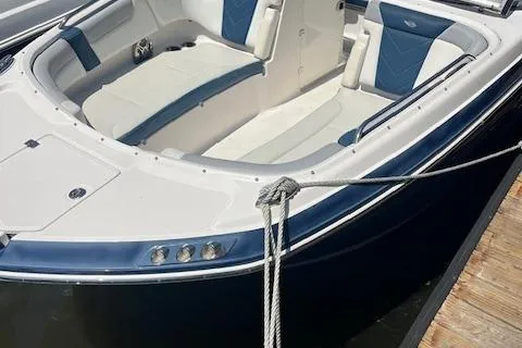 The 250 Suncoast misses nothing. Clean and crisp lines, outboard performance, precise handling, and the luxury and capacity Chaparral is known for. The 250 Suncoast has one of the largest bow areas in it's class. An open concept seating arrangement in the cockpit, and the capability for watersports make the 25 the perfect all around watercraft.