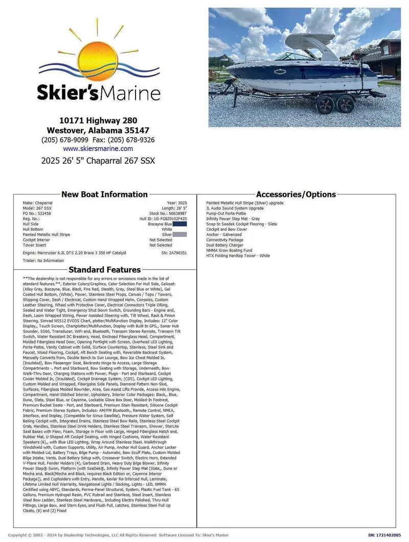 Contact Skier’s Marine Lake Martin about 2025 Chaparral 267 SSX