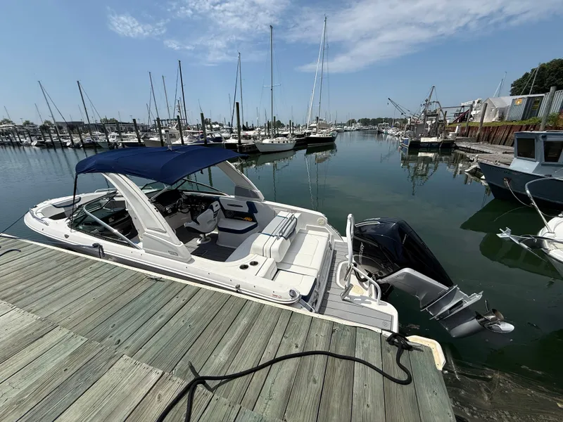 The 267 SSX Outboard is a trendsetter in design, performance, and function. The helm features an all new glass dash with dual touch screen displays. The cockpit is open, spacious and features a multi-position sun lounger aft. The open concept design carries forward into the bow area which features hinged storage beneath luxuriously appointed upholstery. Chaparral went to great lengths to create a powerful and agile craft that glides through the water with minimal noise. The 267 SSX Outboard was designed with the most advanced technology afloat today. Optional Dual 7" touch screen displays with Simard controls, is NMEA compatible and offers navigation, engine management, full gauge compliment, and can be customized to your personal preferences.