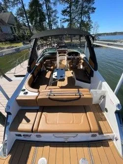 2022 Chaparral 287 SSX - Black Edition. One-owner, freshwater-kept boat in excellent condition. Features include hydraulic swim platform, snap-in SeaDek flooring, freshwater sink, porta-potty, refrigerator, Clarion sound system, and windlass anchor. Clean, well-maintained and ready to cruise.